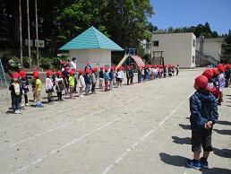 1年生と、2年生から6年生との対面集会を行いました。6年生の代表児童が1年生に歓迎の言葉を送りました。1年生は全員で「よろしくお願いします」とあいさつをしました。対面集会に続いて、地区別に登校班児童が集まり、担当の先生の紹介、登校班や登下校の交通ルールの確認などをしました。毎朝、事故にあわないように気を付けて登校してほしいと思います。