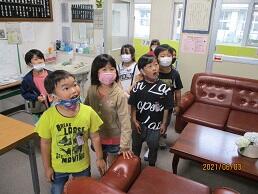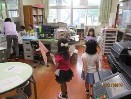 この日は、1年生の生活科の学習で、「校内たんけん」が行われました。1年生は入学してから2か月になりますが、これまで入ったことのない理科室、音楽室、職員室、校長室、事務室などをのぞいたり、中に入ったりしていました。初めて入る教室や部屋で、いろいろなものを発見したり、質問したりして、興味津々で活動していました。これからも明るく元気な1年生で、楽しく学校生活を送ってほしいと思います。