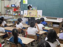 本校では、月に2回ほど月曜日の職員朝会の時間帯に、現保護者や元保護者の方、地域の方によるボランティアで読み聞かせを行っています。この日も、子どもたちが読み聞かせの方々の朗読に食い入るように聞き入っていました。低学年の中には、そばに行って絵本に見とれている子もいました。読み聞かせの皆様、ありがとうございます。