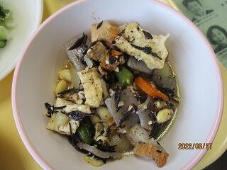大豆のいそ煮は、具材に味がしっかりと染み込んで、大変いい味でした(*^▽^*)ひじきもGOOD!鶏肉、厚揚げもGOOD!もちろん主役の大豆もバッチリでした。ちりめんの酢の物もちょうど良い酢加減で、とても美味しかったです。今日の写真写りは最高ですよね~。