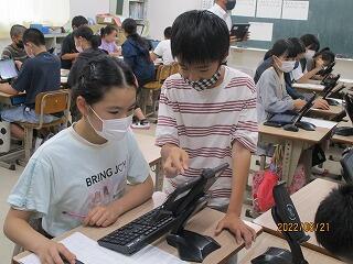 子どもたちのコンピューターに対するリテラシーがものの見事にできております(*^▽^*)子どもたちがタブレットを迷うことなく使い、学習活動を進めることができていました。扱い方を教師に相談する子どもが1人もいませんでした。情報モラルについての資料を1人1人が様々に工夫しながら作成していました。アドバイスも子ども同士で行っていました。とても作業慣れしている感じがしました。子どもは覚えが早いですね~。時代の波に乗り遅れることはないでしょう。担任の先生の指導も的確なのだと思います<(_ _)>