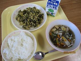 ● ごはん ● もずくスープ ● 高菜そぼろ丼 ● 牛乳 でした。