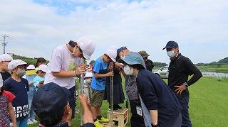 二つめは、川の中に入って、どんな生き物がいるかです。おどろいたことに、きれいな水にすんでいる生き物がたくさんいました。とくにおもしろかったのは、小さな魚がいました。カニとか、いろいろな生き物がいることに「はっ」としました。