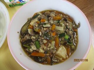 ● ごはん ● マーボーナス ● 海藻サラダ ● 牛乳 でした。