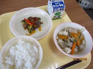 ● ごはん ● ワンタンスープ ● チンジャオロース ● 牛乳 でした。