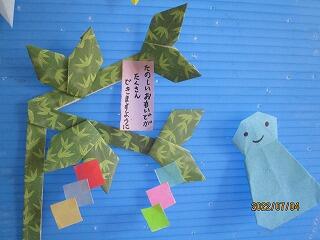 ● ミルクパン ● 七夕スープ ● トマトオムレツ ● ゆでブロッコリー ● 七夕デザート ● 牛乳 でした。