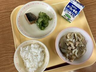 ● 減量ごはん ● 五目うどん ● さばゆずみそ ● きゅうりの添え物 ● 牛乳 でした。
