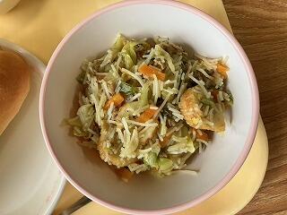 ● マヨネーズパン ● カレービーフン ● 野菜サラダ ● 牛乳 でした。