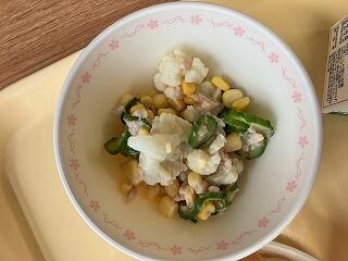 マヨネーズパンは文句なしに美味しいですね~。その上、やわらかくて最高でした(*^▽^*)カレービーフンも良いですね~。カレー味は夏にピッタリという感じです。でっかいちくわが入っていました(*^▽^*)子どもたちも好きだと思います。野菜サラダもGOODでした。カリフラワーが美味いですね~。それに、きゅうりとコーンも加わってVERY GOODの味付けでした。