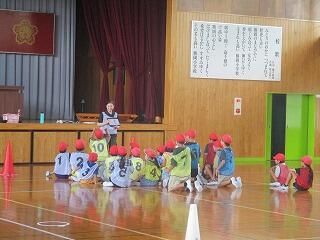 4年生。1組はレクレーション。盛り上がっていました。2組は音楽。楽器を使って演奏していました。