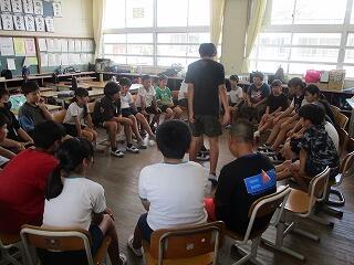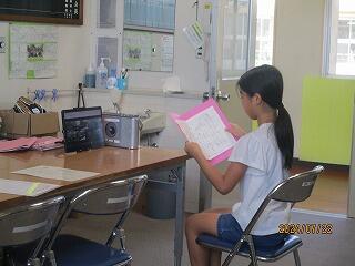 校長先生からは、「あこがれ」「あんぜん」「ありがとう」の3つで子どもたちが頑張ったことや、「ありがとう」の言葉と「宇宙の法則」についてお話がありました。校歌を各教室で元気よく歌いました。また、生活指導の新垣先生から、夏休み中は自分の命は自分でしっかり守りましょう、火水車人情報に気を付けましょうという大事なお話しがありました。