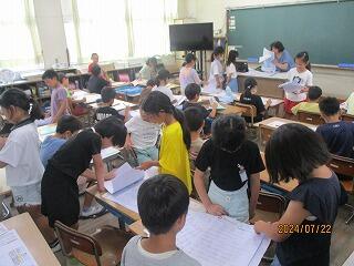 この後、各学級で夏休みに向けての話や宿題や課題の確認などがありました。今年は通知票がありませんが、学級指導の中で頑張ったことを1人1人誉めてもらっていました。