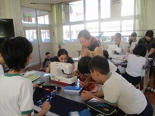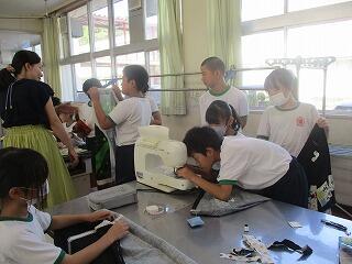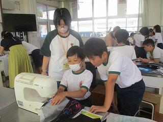 また、5年生は家庭科のエプロンづくりに取り組んでいました。