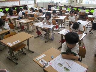 1年生は国語。昨日の続きで見たものを短い言葉で表す練習をしていました。語彙が増えると表現力も伸びて作文などが上手に書けるようになりますね。