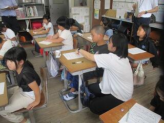 今日は2年2組と3年2組で研究授業がありました。どちらも学級活動、教室や自分たちの課題を見付けて改善のための実践をするという授業でした。2年2組は「チクチク言葉とふわふわ言葉」の学習でした。先生のお話をしっかりと聞いて、自分たちが実践することをしっかりと決めていました。ふわふわ言葉いっぱいの温かい学級を作ろうとみんなで話し合っていました。