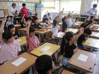 6年生も町教育委員会、宮崎県教育委員会の先生方が体育の授業を参観に来られました。ソフトバレーボールの授業で、子どもたちは準備や後片付けまで協力して取り組んでいました。(授業を見ていて写真を撮るのを忘れていました。)