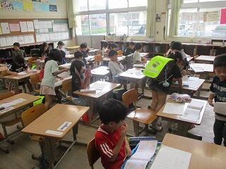 【3年生】1組は学級活動で10月10日(目の日)の学習、2組は社会科で「火事が起きたときに働く人たち」の学習をしていました。