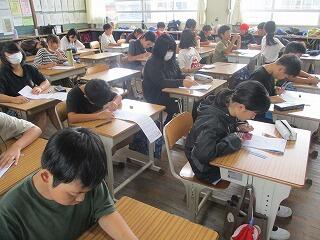 【5年生】1組は漢字ドリルの早読みにチャレンジしていました。2組では中学校の栄養教諭の先生が来られて、食育の授業をしてくださっていました。みんな一生懸命取り組んでいました。中学校の先生が、5年生がよく話を聞いて頑張っていましたよと誉められていました。