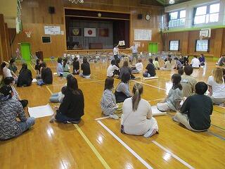 今日は5年生は宿泊学習前のお話を体育館で聞きました。青島少年自然の家に行く日も間近になってきました。今日はセンターでの過ごし方や準備物などについて詳しいお話がありました。