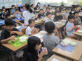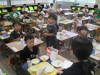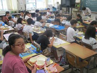 今日は下学年の給食の様子を撮りました。今日は親子丼でした。みんな美味しく食べて、モリモリおかわりしていました。いつもおいしい給食を提供していただいている給食センターの方々に感謝です。