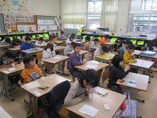 【4年生】1組は国語「友情のかべ新聞」のテストを受けていました。テストが早く終わった人は、時間が来るまで静かに読書をして待っていました。2組は学級活動の研究授業がありました。主題は「整理整頓」でした。
