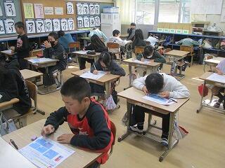 【2年生】こちらも国語でしたが、プリントの復習でした。終わった人も静かに待っていました。
