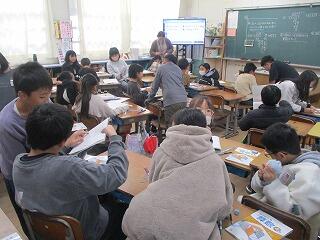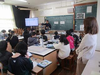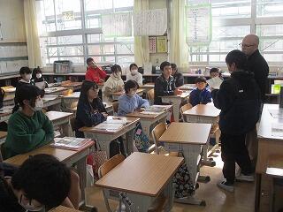 【3年生】1組は算数、分数を使って大きさを表す学習でした。5分の3mは1mを同じ長さで5つに分けたうちの3つ分などを学習していました。2組は学級活動「あったかことばをつかおう」の研究授業でした。自分の考えを発表したりプリントに書いたりしながら、しっかりと考えることができていました。