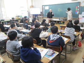 5年生:1組は理科の授業でした。てこの原理を使ったいろいろな問題に挑戦していました。2組は外国語、先生方の指示をしっかりと聞き、日本語と英語の発音の違いについて学び取っていました。