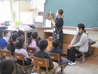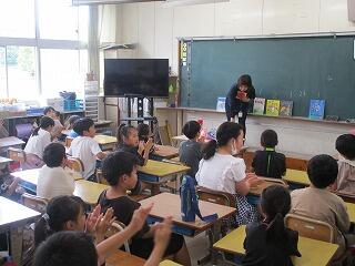 今日は、朝、地域の読み聞かせボランティア「よんみろ会」の方々においでいただき、子どもたちへの読み聞かせを行ってもらいました。各学年学級にお一人ずつ入っていただきました。どの学級でも工夫されていて、おもしろい話や仕掛けに子どもたちも夢中になって聞く姿が見られました。終わると、どの学級からも拍手がわき起こっていました。読み聞かせをきっかけに本をたくさん読む子に育ってほしいです。「よんみろ会」の皆様、本日はありがとうございました。