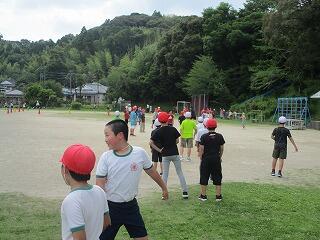 4年生です。学年体育でドッチボールで盛り上がっていました。