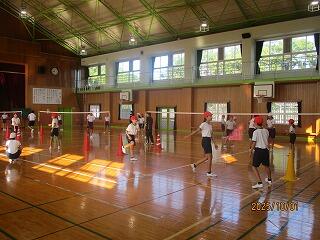 6年生は体育館でソフトバレーボールをしていました。キャッチやアタックがずいぶん上手になってきているなと思いました。また習字では「友情」の文字を書いていました。払いの形が難しそうでした。