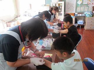今日は6年生が貧血検査を受けました。初めて血を採る子もいてドキドキしながらの検査だった子もいたようですが、みんな頑張って受けました。