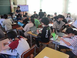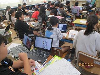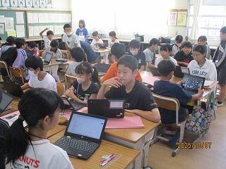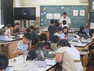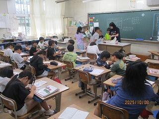 4年生1組は算数、何倍でしょうの問題に挑戦していました。2組は理科で動物の体について調べていました。校長先生の好きな動物は何ですか?と尋ねられたので「〇〇〇〇」だよと答えました。