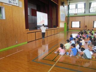 1年生は安全な登下校の仕方や不審者が現れた時の対応について、担任の先生からお話をきいていました。みんな真剣に聞いていますね。