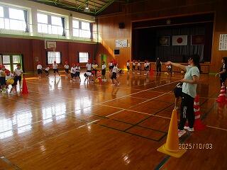 2年生は体育の時間でした。代表の児童が整列をさせていましたが、素早くきちんとできていました。