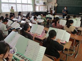 4年生:1組は算数「計算の順序」の学習をしていました。文章をしっかと読み取って順序を整理していました。図や絵に表すことが大切だと学習していました。2組は音楽。音楽大会の練習に集中して取り組んでいました。