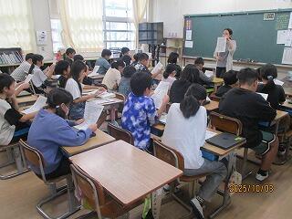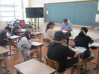 3年生:ちょうどテスト前の復習プリントをしていましたが、分からないところを友達や先生に聞いて習っていました。分からないところをそのままにしないことが大切なんですね。