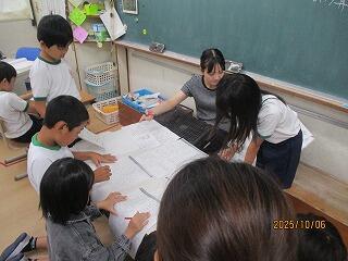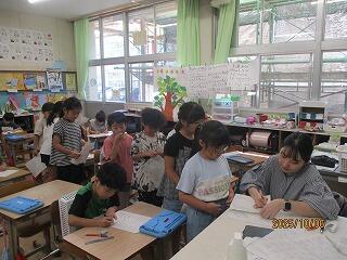 3年生 理科で方位磁針を使って東西南北を調べていました。道徳では外国語版の舌切り雀のような物語を読んで登場人物の気持ちを考えていました。