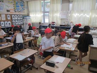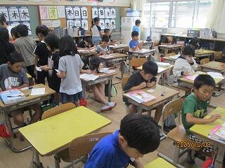 2年生は国語。新しい漢字の練習。腕全体で空書きしたり、ドリル帳に繰り返し書いたりして覚えていました。2年生は全部で160字の新しい漢字を習います。がんばりましょう。