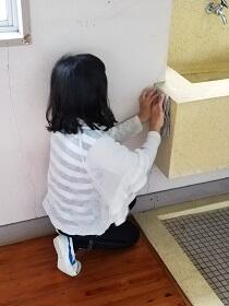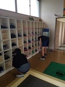 明日の登校日を前に、前回に引き続き 校内の消毒をしました。