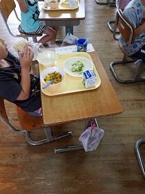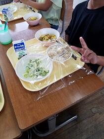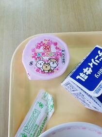 新入学と進級お祝いのゼリーがつきました。給食再開です。