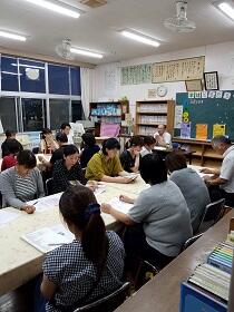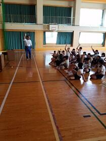 体力テストに向けて縦割り班での行動の仕方、テストのやり方、そして測定方法、の確認をしました。いっしょうけんめいテストに取り組む子どもたちのためにも正確に測定したい、と先生たちも真剣でした。県から出ている「測定ポイント・アドバイス集」を活用して体育の時間等に練習してきた成果も出ているようです。本番が楽しみです。