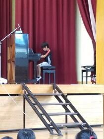 今回のパフォーマンス集会では 低学年のみなさんが自ら手をあげてみごとなパフォーマンスを披露してくれました。いつも仲の良い兄妹が迫力ある柔道の投げ技を、なかよし1年生ふたり組は息の合ったサッカーのパス、にこにこ笑顔のすてきな1年生のピアノ、元気な二人のかっこいいなわとび・・・。 少し緊張していましたが大きな拍手と歓声につつまれた後の笑顔も素敵でした。