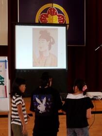 1年生が2年生に案内されて、学校探検をしていました。