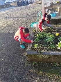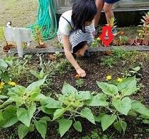 1年生は学級園の手入れをしていました。冬の間、しっかり根をはっていた草をがんばってていねいに抜きました。