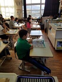 3年生が音読の練習をしていました。「すいせん」「カエル」「アリ」になりきって読んでいました。たまらずピョンピョン飛びはねたりラッパを吹くまねをしてみたり・・