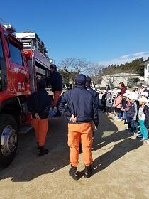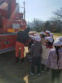 理科室から出火したという想定で、避難訓練を行いました。「お、は、し、も」の約束を守って、火災発生の放送から1分57秒で全員避難を終えることができました。担当の先生と南消防署員の方から、火事の時の煙のこわさについてお話を聞き、消火器の使い方の体験をしました。消火器の使い方は「!ピン!グー!」はじめに「ースを外す」「ピンを抜く」「グーとレバーを握って使う」とわかりやすく説明してもらいました。最後に消防車を見学させていただき、命を守る仕事の大切さについても考えることができました。