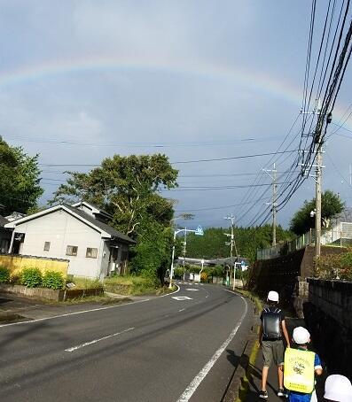 朝の登校指導中、虹が出ていました。秋の虹は消えやすいといいますが、子どもたちが登校を終えるまで、出ていてくれました。