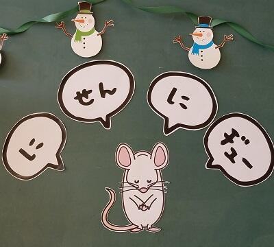 図書館サポーターの小田先生が作ってくださいました。↑絵文字:三人
