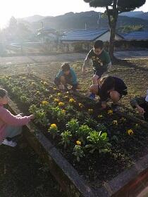 温かな日曜日、サンパーク都城さんのご協力を得て、「寄せ植え体験教室」を開催しました。色とりどりの花を選んで、背が高くなる花、横に広がる花。。成長した様子を想像しながら植えていきます。熱心に水のやり方や、夏越しのさせ方を質問しているお友だちもいました。